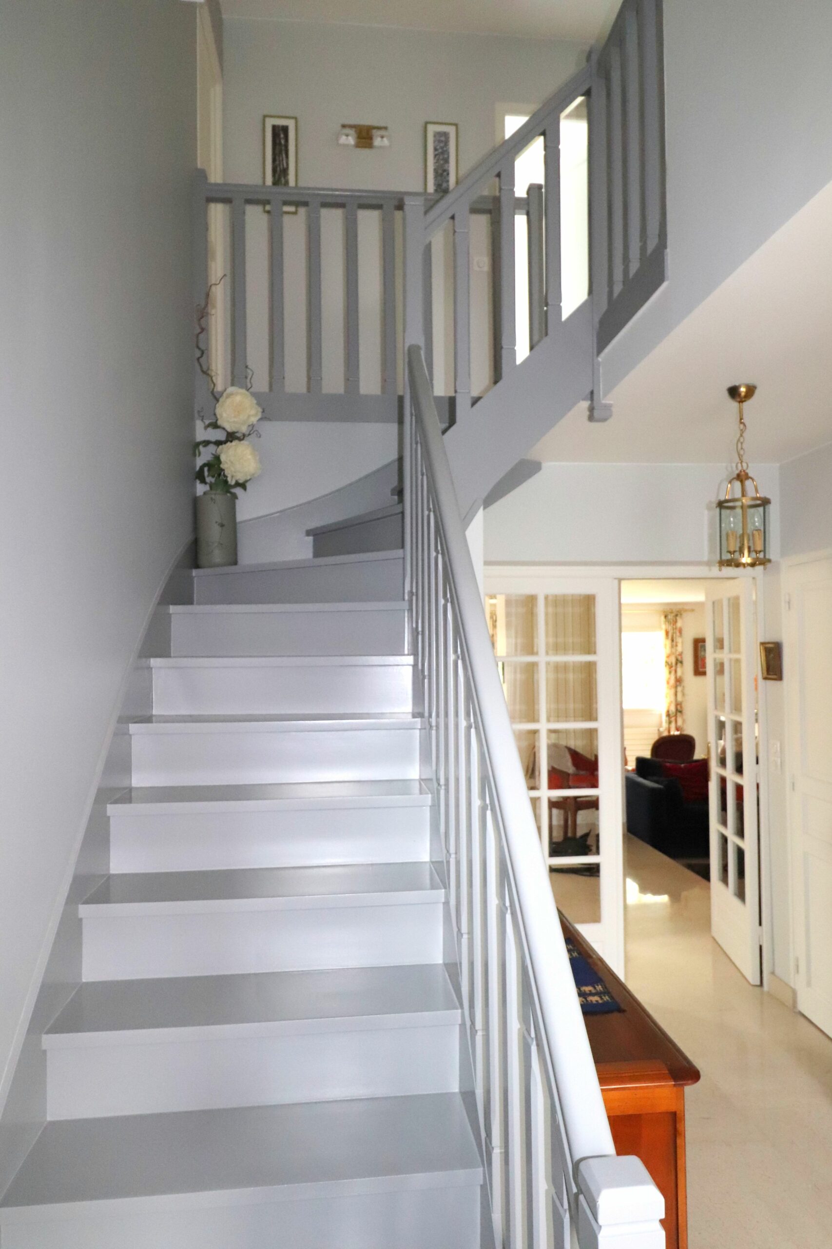 . Dans l’entrée on oubli l’escalier en chêne traditionnel entièrement repeint en gris clair