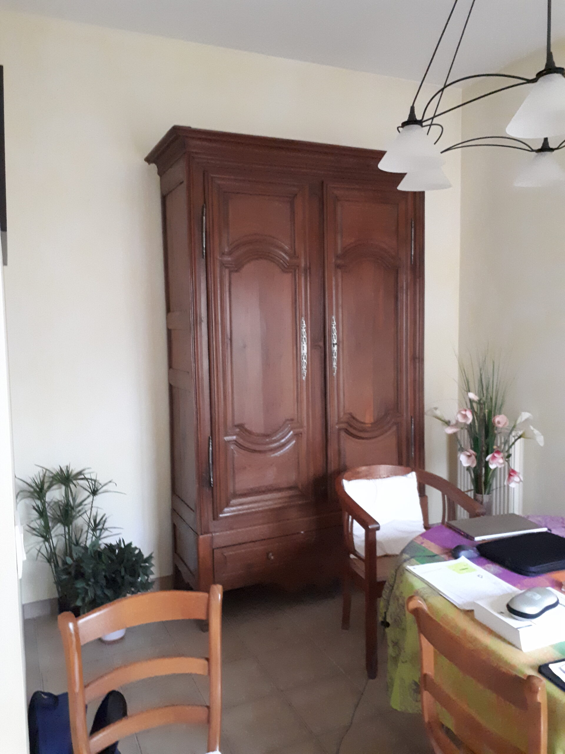 Les clients ont opté pour un parquet  en stratifié grandes lames gris et chanfreiné de la Parqueterie Nouvelle